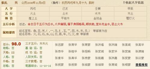 例如,有人出生于2013年5月30日18:14,八个字是桂思、丁思、丙申和丁友。日干是丙火。五行中有一个水、五个火和两个金。五行缺乏木材和土壤。因此,应使用五行属于木材和土壤的词语。