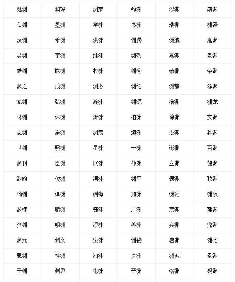 对父母来说,给孩子取名并不容易。尤其是选择一个有渊字的名字,需要慎重考虑。以下列出了一些带有“渊”的名字供参考: