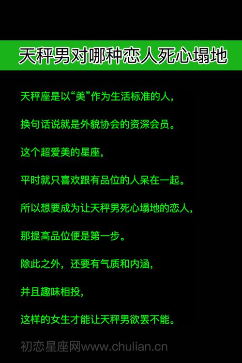首先,我们应该注意外表和个性的协调。我相信我们都知道,天秤座的男人对外表有很高的要求,所以,如果你想让他对你死心塌地,那么你的外表一定是必要的条件之一。具体来说,就是要保持良好的外表,并与他们的气质相协调。
