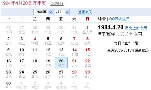 农历:1984年9月288日