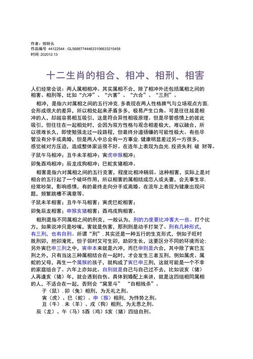 十二生肖是十二地支的形象化代表,即子(鼠)、丑(牛)、寅(虎)、卯(兔)、辰(龙)、巳(蛇)、午(马)、未(羊)、申(猴)、酉(鸡)、戌(狗)、海(猪),随着历史的发展,逐渐融入到相生相克的民间信仰观念中,体现在婚姻、生活、年运等方面,每一种生肖都有丰富的传说。