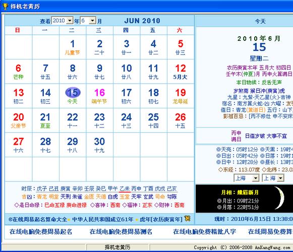 1.算法差异很大:即使在相同的日历中,使用不同的吉祥算法也会产生不同的结果。在选择万年历测试公司查询吉祥算法时,需要选择相对准确和标准化的算法,否则结果可能会偏离实际情况。