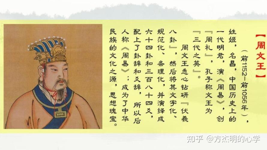 周文王是周朝的开国君主之一。他战胜了暴虐的商朝,建立了周朝,开创了中国的封建王朝制度。伏羲八卦与周易在文字符号、占卜技术、术语性质、哲学思想等方面具有明显的特点。因此,在讨论先民留下的卜识内容和卜卦理论体系时,周文王有了更深入的洞察力,可以更贴近现实,从而演变成《周易》。