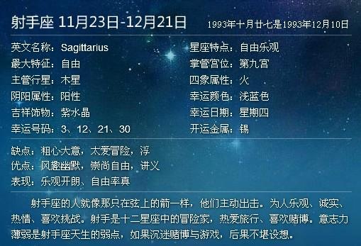 【注】:星座按阳历出生日期算的,对照生日参看上表就可以查出是什么星座了。