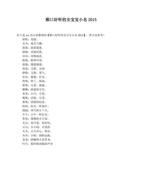 小名的韵味是否好听和顺口,是十分重要的。在选择小名的时候,可以试着朗读几遍,看看是否口感好,音律完美。