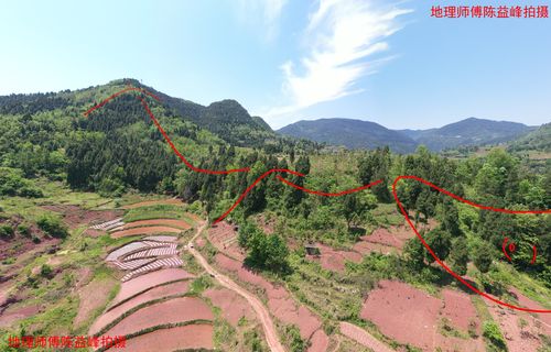 这里的箭头是指穴位后面有圆形印象的高起部分是入首龙,从后高峰到圆形印象高起的一线称为后山(后龙)来脉。
