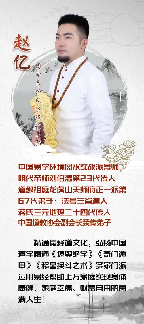 天界山人李洪亮先生吸收了《周易》的精髓,融合了儒、释、道文化,认真研究了自己的面貌。近20年来,他一直走遍祖国著名的四川古刹道观,如手掌、命理、阴阳宅风水、姓名、择日、六卦、道术、道术等。许多著名的老师和陌生人都是真实的传记,古今使用。结合“堪舆风水的第三只眼”,他用智慧选择环境,创造环境,调整环境,面对生活的起伏。能处之泰然,如履平地。先生常年活跃在北京、江苏、浙江、广东、广东、云南、山东、湖南、东北、内蒙古、河北、台湾、香港、澳门、新加坡等地,常年担任多个单位的易学风水顾问,为近千家公司、房地产、工厂、学院和家庭,香港、澳门和台湾。他还经常做易经讲座和预测计划。拯救了无数濒临破产和解体的企业和家庭,被易学界誉为易学奇才。应广大朋友的要求,B决定在未来几年创办一所“八卦学校”,并开始接受学徒;教学内容;预测十多门课程,如学习风水、道教和道教艺术。