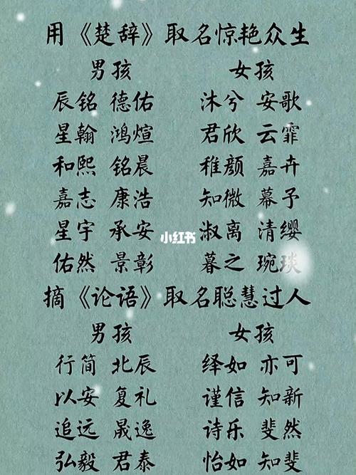 取名讲究“女诗经,男楚辞,文论语,武周易”,《楚辞》是浪漫主义之中博大规律,从中找一个好名字,富有美好的寓意。《诗经》的名字比较适合女孩取一个灵动的名字,富有诗香书的才气,灵动多姿的女孩形象。