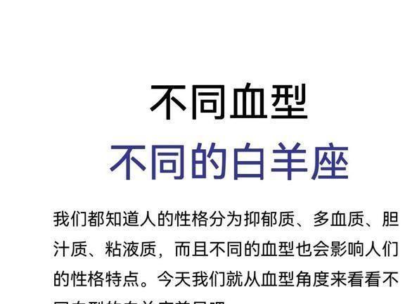 在讨论白羊座男孩的血型时,我们可以发现没有科学的研究或证据表明白羊座男孩与某种特定的血型有关。虽然在日本,对血型性格的偏见很普遍,但白羊座男孩的性格特征并不与任何血型有关。