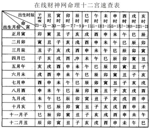 甲子年寅月毛出生时,命宫地支数为26-(1) 2)=23,因其大于12,应减去12,命宫地支为11,命宫地支为子,命宫地支为丙子。