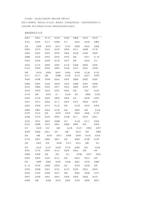 龙宝贝起名大全