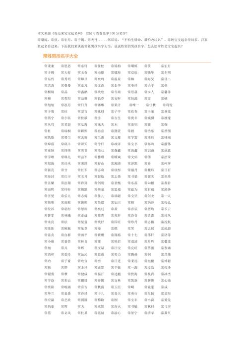 常姓是中国常见的姓氏之一。常姓的起源可以追溯到中国古代战国时期。据《世本》记载,常姓以封国常命名,封国常的祖先是老子的金武卫士常思军。因此,常姓在中国历史上占有非常重要的地位。