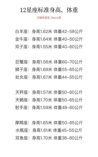 12星座身高体重标准