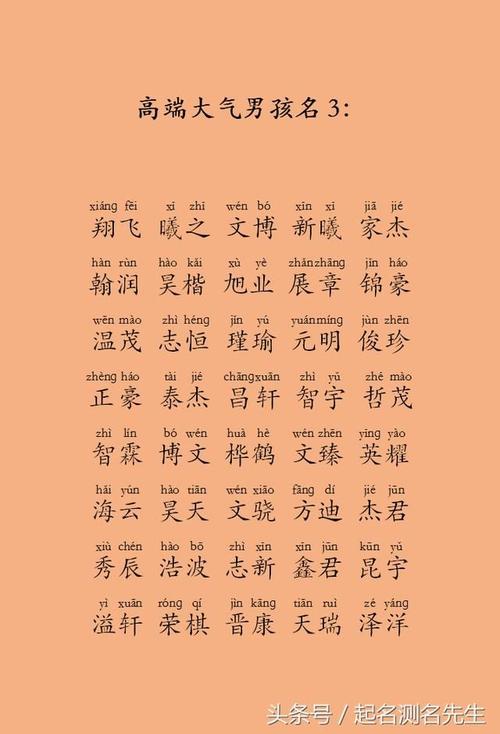 男孩的名字,名字的发音要响亮;顺口。不要起谐音不雅的名字,如朱石谐音为“猪屎”,丁会师谐音为“会死”等。