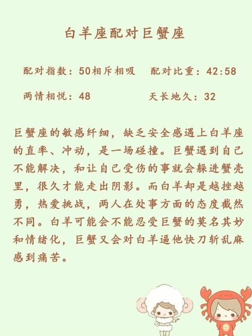 因此,在解决这一问题上,白羊座的人需要学会耐心等待和尊重他人的感受,而蟹座的人则需要更好地表达自己的想法和情感,从而让白羊座更好地理解自己。