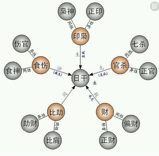 伤官,食神是日元生的五行,伤官与日元五行阴阳属性不同;六亲中代表儿女;