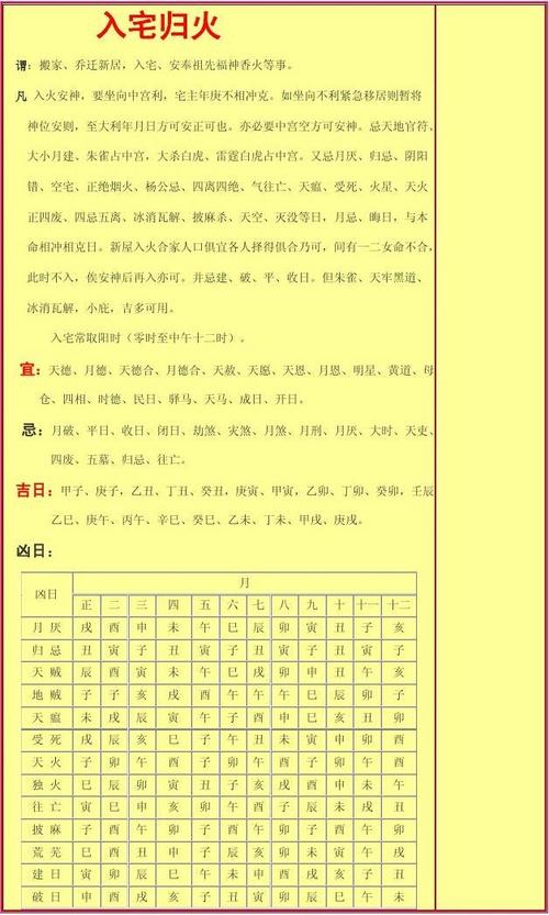 九龙吉:戊辰,甲戌,己卯,乙亥,戊寅,乙酉,丙戌,癸巳,壬辰,癸丑,己酉,十一日入宅,主有益财、大旺进契。