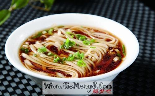 做生意的人梦见自己和别人吃面条,代表有小人设计,营利不顺,稍有变动转为平稳。