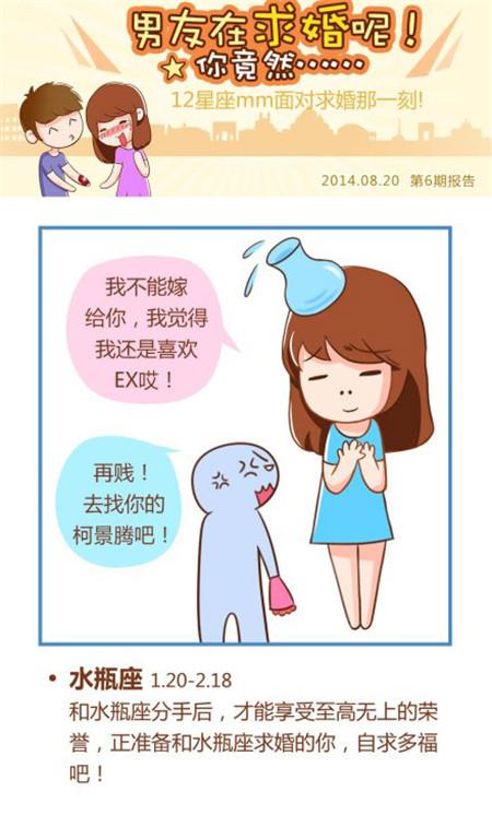水瓶座的女人认为,如果生活是相同的模式,那就太无聊了,所以他需要他的男人接受他奇怪的想法,好和他一起计划一个特殊生活的男孩。因此,在与男孩交流时,水瓶座女孩会故意说一些创新的话题,观察对方的反应。如果对方太惊讶和不可接受,水瓶座女孩可能会退缩。如果对方的想象力比他大,他可能会很容易接受对方。