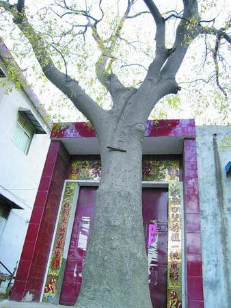 其次,在门口放一对石狮,然后用金箔包裹树干,也可以解决门口有树的问题,但上述方法不方便,效果好。