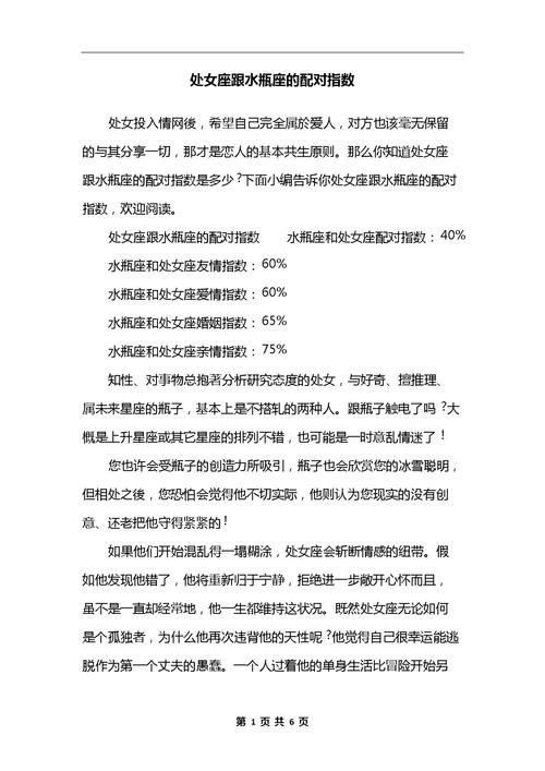 不断翻新不断进步的一对组合。由于你们在星座学上是对宫,所以很多事情都是完全相反的,只是每个人都是外向乐观的星座。两者的固执和自我,加在一起就会出现“各持己见,不肯放手”的死局。起初,你们两个可以在一起。主要原因可能是狮子座有信心收复这个冷漠的水瓶座,并将他奇怪的气质纠正为正常人。水瓶座三分钟的热度也让他们对霸道的狮子感兴趣。恐怕这个想法很快就见底了。当你冲动到谈论婚姻时,我建议你想清楚。你是否有足够的信心和毅力白头到老?首先,你应该知道做朋友和情人是两回事。不要认为好朋友可以成为好情人。