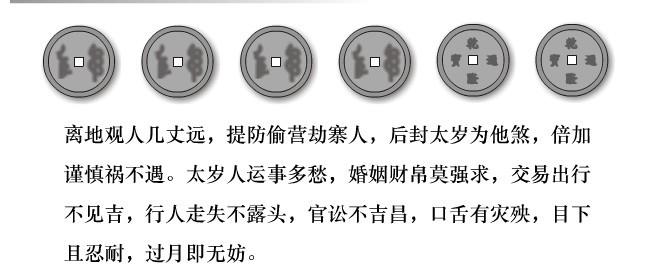 方法:将三枚铜钱合于双手掌,此时默念自己所需预测之事,静心一分钟,此时人天合一,信息产生共振,再摇六次,记下每一次的爻象。