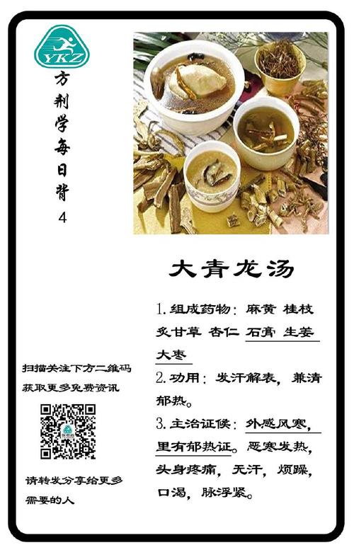 总之,大青龙汤是一种中药汤剂,具有清热解毒、消肿止痛的功效,适用于中医治疗多种疾病。吃饭时要注意使用方法和适用人群,严格按照医生的指导用药,达到最佳的治疗效果。