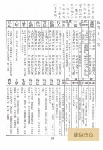 导读:观音灵签是佛教文化与本土文化相融合,用佛学的智慧来解释卦象。与其说观音灵签是占卜,还不如说是佛学智慧对未来境遇的瞻望,进而力有所指。种下“善因”,何愁没有“善果”!观音灵签占卜每支签都有其特殊的意义。那么,观音灵签48签是什么意思?观音灵签第48签怎么解签?请随我一起看看观音灵签第48签解签,了解一下观音灵签第48签所包含的神明指示吧!希望能够帮助到您!