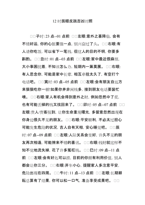 12小时眼皮跳吉凶对比