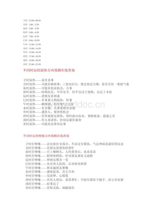 与眼跳类似,喷嚏在一些文化中也被认为与吉凶有关。人们会根据喷嚏的次数以及时间,来预测不同的吉凶。下面是一些常见的解释: