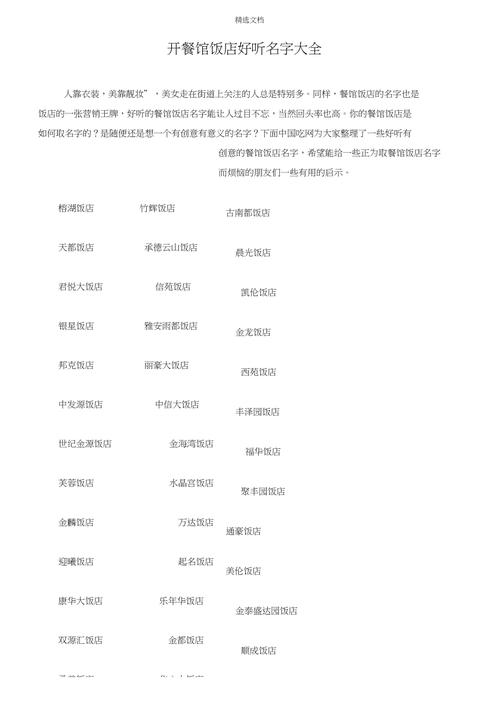 在如今的饮食市场上,饭店的竞争十分激烈,每个饭店主人都在努力寻找新的灵感来吸引更多的顾客。给饭店取一个好名字不仅能让顾客一眼就认出你的饭店并留下深刻的印象,还能让人们对你的饭店产生好感。因此,苏州开饭店取名字大全可以帮助你找到适合你饭店的名字,并让你的饭店在市场上脱颖而出。