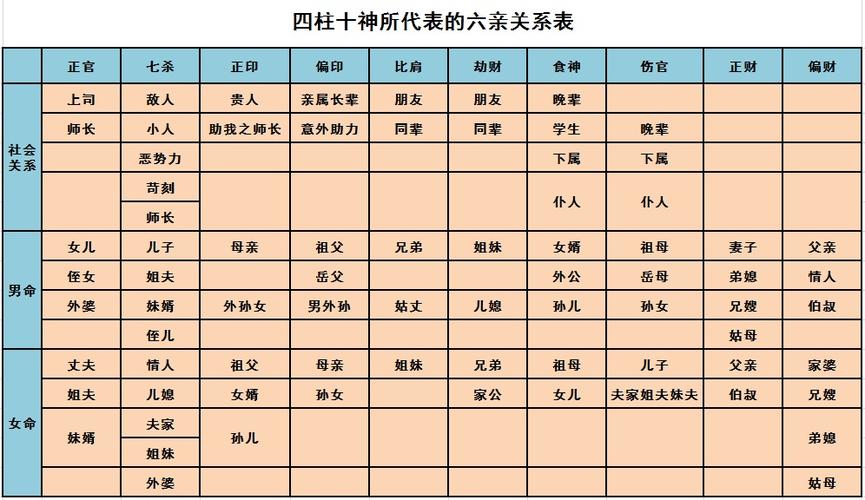 在八字预测中,六亲进一步演变成十神;父母是印枭;兄弟是抢劫;子孙为食伤;妻子的财富是偏财;官鬼为官杀。