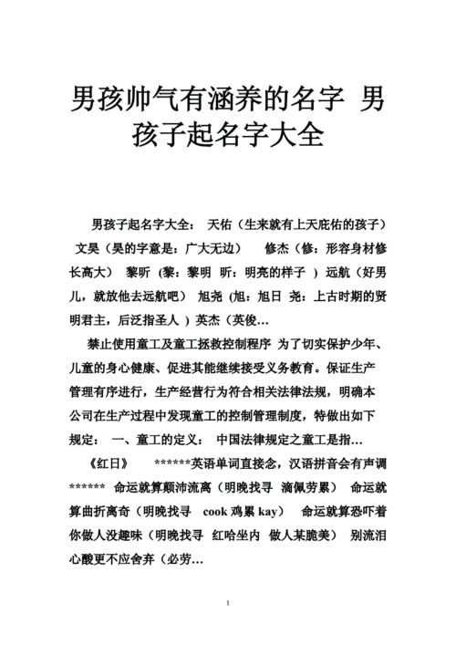 男孩新颖有涵养的名字如下: