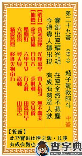 观音灵签第二十九签:赵子龙救阿斗(中签)