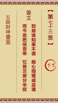 抽到此签:告诉当事人做事情自己要有主见,不要听从人家说那样做。说这样就这样做,人多口杂,最后竟无所适从。不必问人也不必问神,做事情要靠自己权衡敌害得失,自然自己下决定,这样才会有成就。