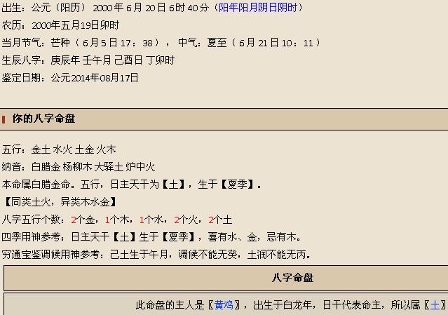 今日年月日三柱的五行,有2个金,0个木,0个水,2个火,2个土,日主天干为土,五行缺木水的情况下,五行就喜用土属性的字眼。