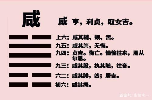 咸卦人际关系分析正如前面所提到的咸卦特别适合联合或合作。所以,在人际关系中,咸卦通常表现出和善、愉快以及互动的一面。咸卦中的两个阴爻和一个阳爻代表一个成员和一对夫妻之间的关系。因此,咸卦具有建立亲密关系的力量,关注个人生活、工作和家庭之间的关系。