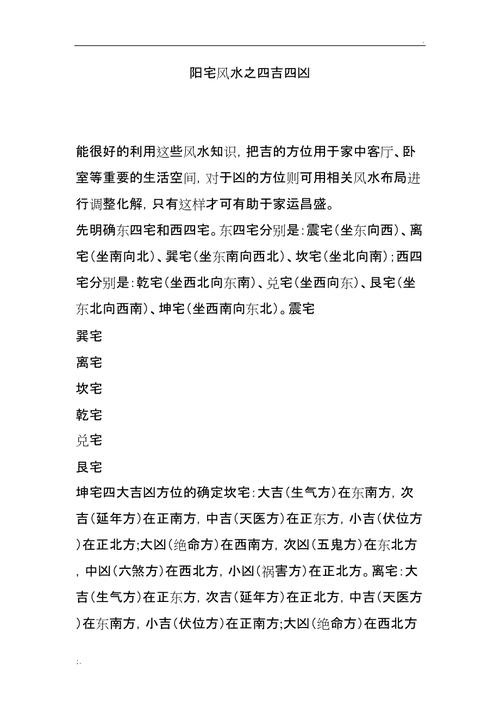 房屋买卖是人们一生中的重要事件之一,尤其是在中国,它不仅代表了家庭的温暖,更是一种传统文化的体现。房屋的买卖不仅与房屋本身的价格有关,也与房屋所处的环境、风水等因素有关。下面就让我们来看看房屋四吉四凶的具体内容。