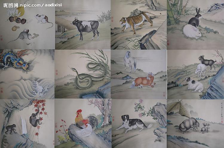 据说,十二生肖起源于古老的动物崇拜,它们分别是: