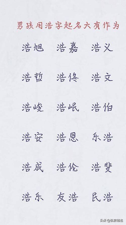 字义内涵:浩字的本义是指浩瀚的水势,如浩浩如烟海,浩浩荡荡。后延伸为大和多。作为一个名字,它指的是正义、勇气、清新和优雅;