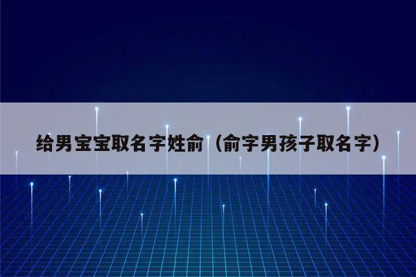 姓俞的男孩名字有哪些好听的名字?