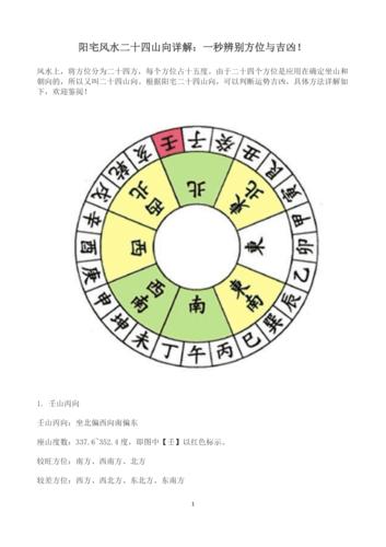 二十四山是风水学中非常重要的理论。根据时空关系,不同的人在不同的位置有不同的二十四山。这些山代表着不同的能量,有的是吉祥的能量,有的是凶猛的能量。在风水学中,我们可以通过识别二十四山的方向来判断一个地方的风水质量,以及对人的影响是好是坏。今天我们就来具体了解一下这些山的方向和吉凶属性。