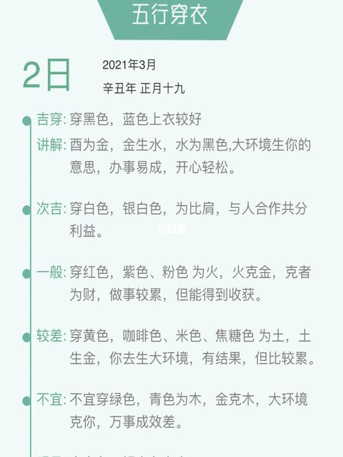 1、每日衣服颜色吉凶:衣服颜色搭配公式表穿衣不懂配色?这是个大问题,本文简单分享一下衣服颜色的搭配公式:每天衣服的颜色怎么样?