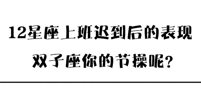 双子座的人天生喜欢开玩笑,喜欢调侃别人,所以他们很容易就会忘记自己需要按时到达公司。如果他们真的迟到了,一般会采取以下几种反应: