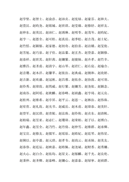 4、赵钦杰、赵晓睿、赵搏涵、赵瑞闻、赵尚龙、赵华宁、赵瑞云、赵斌彦、赵圣哲、赵雅宏、赵朴涵。