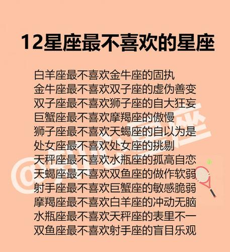 处女座最容易和射手座不和。射手座是十二星座中最天真、最自由和最不拘泥的星座之一。他们喜欢探索和冒险,不喜欢被束缚和限制。而处女座的严谨和挑剔会让他们感到被限制和压抑,产生反感和抵触。