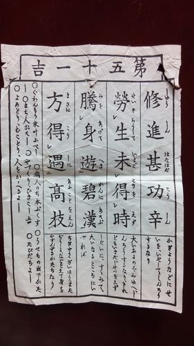 意思是还有好事,登记比“大吉”低,比“吉”高。到目前为止,我们将遇到人生的起点,最好向上帝求助。财运:不会来大钱,但有小财。失物:忘记放在哪里,想不起放在哪里的东西,在位置低的地方好好找还是能找到的。旅行:别担心,有机会。恋爱:还没有遇到心相通的人或者能马上结婚的人。命运(也许啊,也许啊,用心都有可能啊,都是模棱两可的话,就不翻了)。