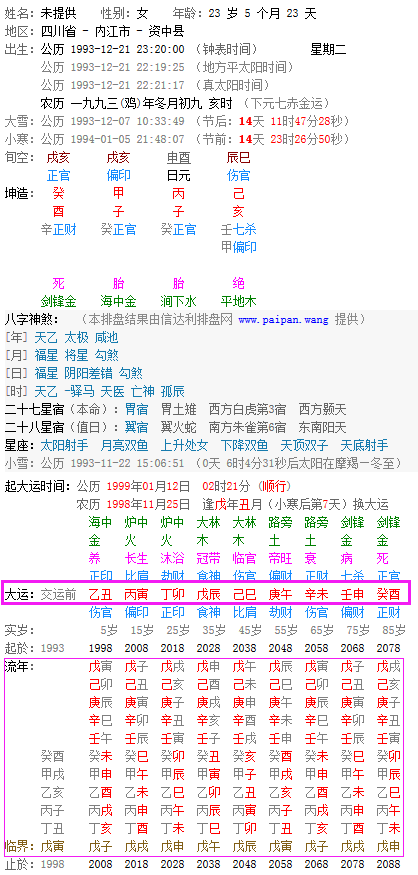 4.大运会的开始是从一岁开始进入大运会,参与四柱理论的命运。从一岁到十一岁都有起点。大运会的起点是根据人的自然岁月增加的,所以无论运输干支是顺推逆排,每一步的起点都是十年一步的。.