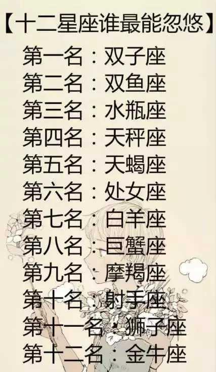 勾魂的星座,第一,金牛座。金牛女一般长得清理脱俗,她不是以美貌吸引男人,而是靠气质。她的举手投足都充满了韵味,是12星座里的“贵族女人”,她对男人貌似很温柔,但你真正靠近她,她又像灭火器,把你的热情顿时打击回去。第二天蝎女。她们是一群神秘的女人,给男人以无限的想象。但他们整个人不是很好处,比较冷漠。第三,双鱼女,她浑身充满了女性的魅力,对爱的男人千依百顺,而且性格柔弱,男人不由得想去保护她。她才是真正的勾魂高手!