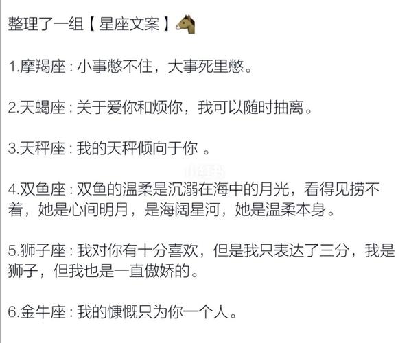 作为星座文案的写作者,我们还需要了解不同星座文案的特点与卖点。下面是一些不同星座文案的特点与卖点。